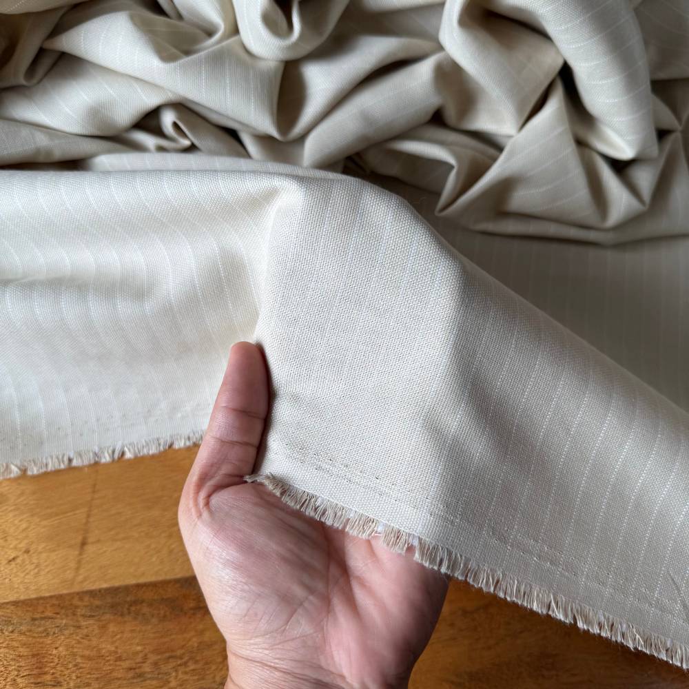 Tecido Linho com Algodão Gales - Risca de Gis Bege