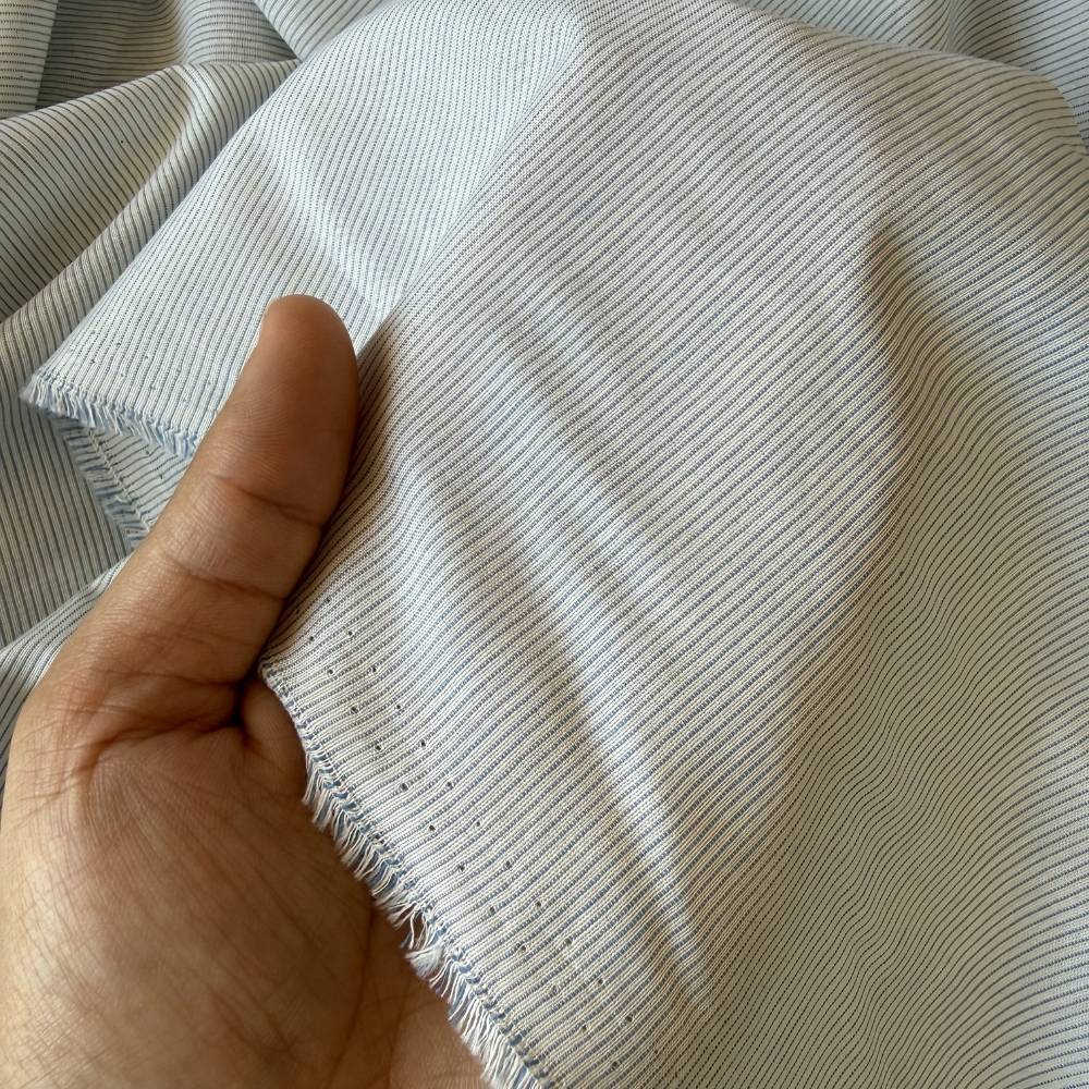 Tecido Cambraia de Algodão, Liocel e Linho - Listrada Azul