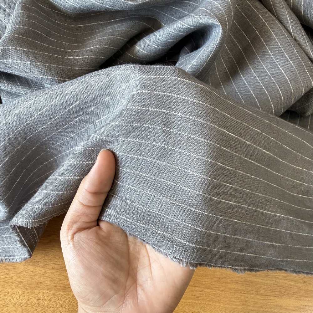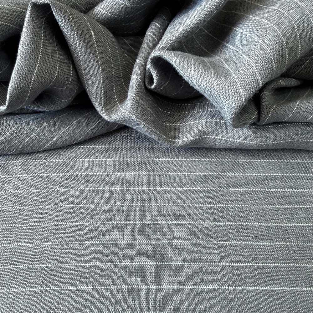 Tecido Linho Puro para Alfaiataria Risca de Giz Cinza - 100% Linho