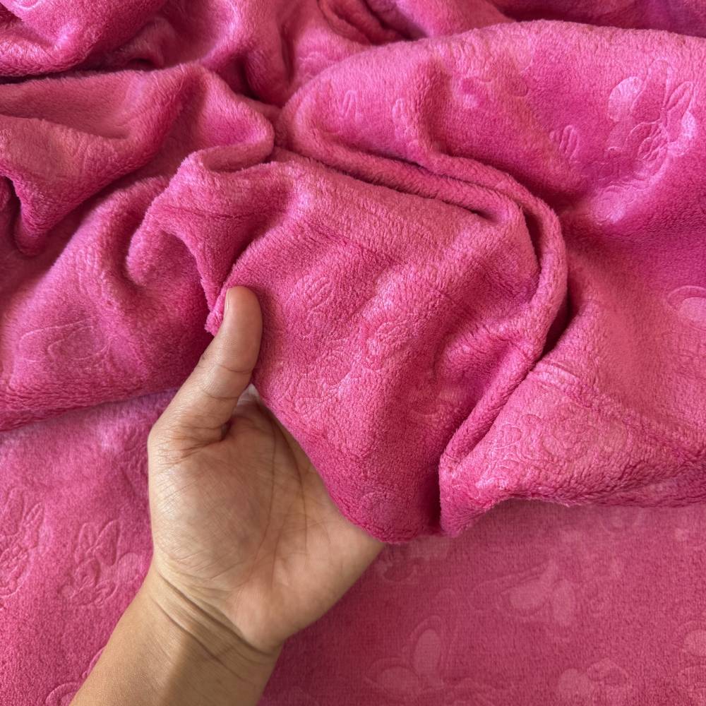 Tecido UltraSoft Relevo - Personagem Minnie Rosa Choque