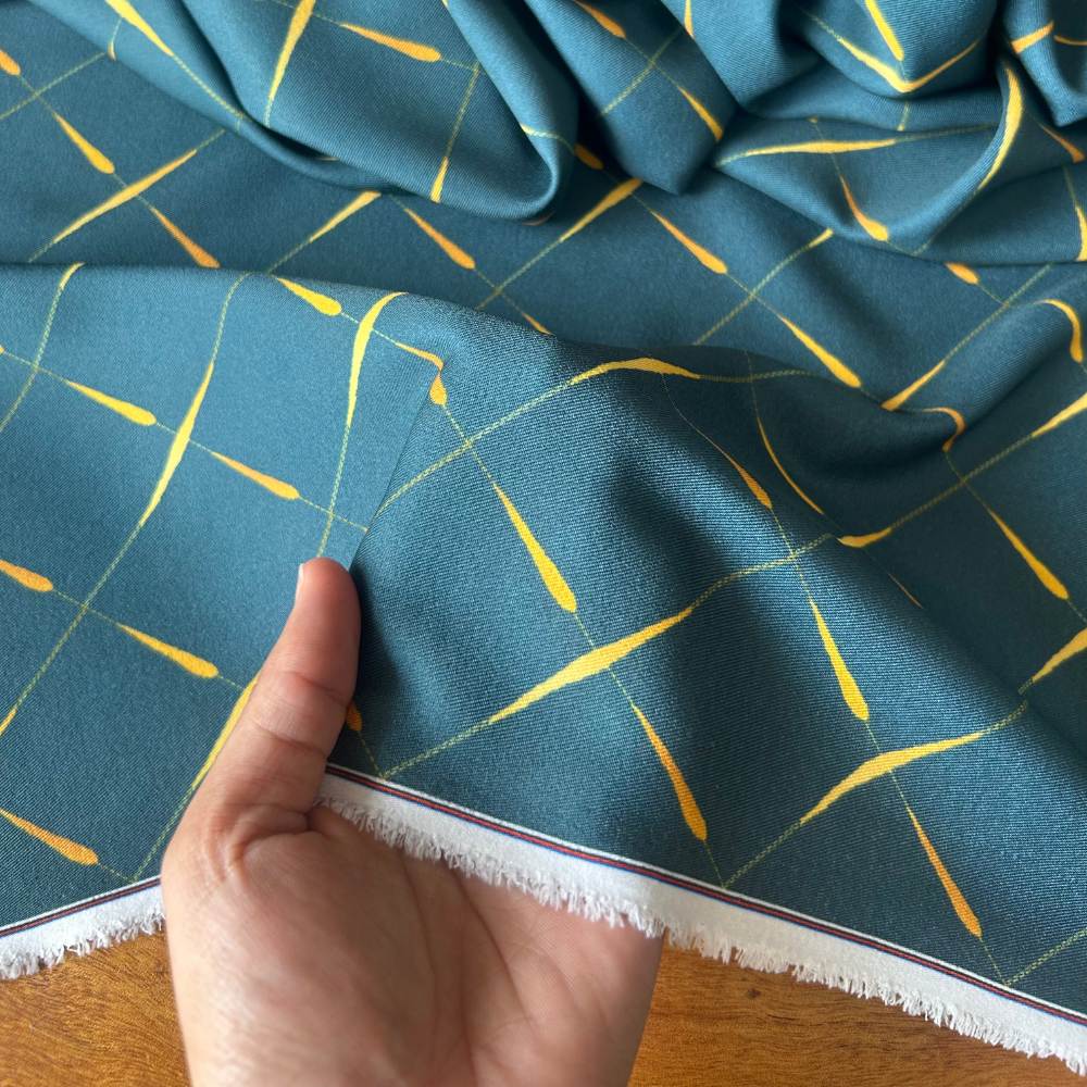 Tecido Estampado Crepe Elise - Verde Detalhes Dourados