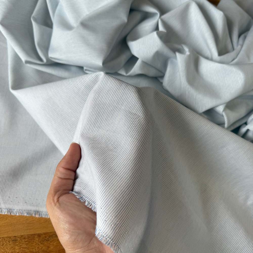 Tecido Cambraia de Algodão, Liocel e Linho - Listrada Azul