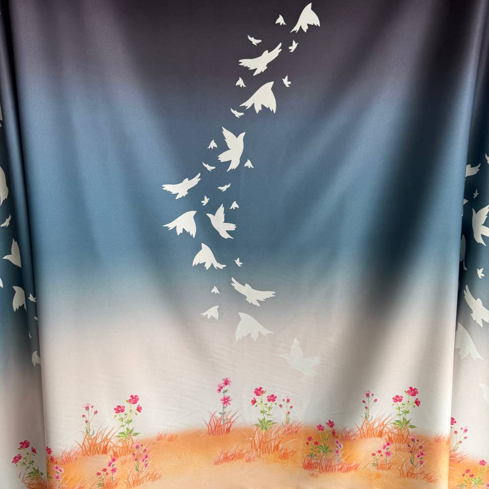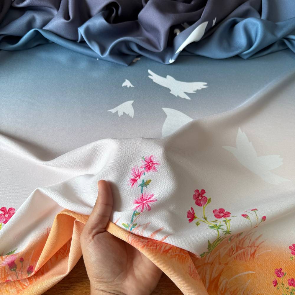 Tecido Estampado Crepe Elise - Barrado Dia de Primavera